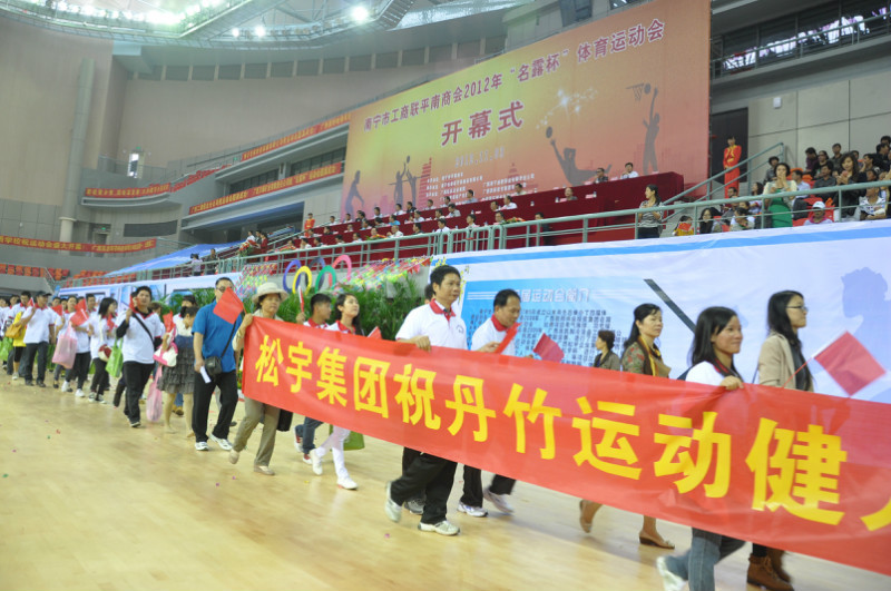 11月3日上午,位于南宁市五象新区的广西体育中心体育馆内,彩旗飘扬、锣鼓喧天。由南宁市工商联平南商会主办的南宁市平南商会2012“名露杯”体育运动会在这里隆重举行。来自平南商会300多家民营企业和平南县18个乡镇组成的1500余名运动健儿雄赳赳、气昂昂,满腔热情地参与到此次运动会中来。