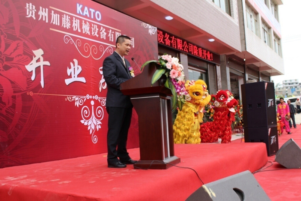 松宇集团执行总裁兼贵州加藤机械设备有限公司董事长钟登胜先生的热烈发言将庆典仪式带入高潮。钟总说:“广西松宇企业集团是集工程机械、房地产和金融业、重型物流等为一体的综合性集团,是中国工程机械运营的标杆企业之一,加藤是我们重要的品牌,今天在贵阳成立贵州加藤公司,并开张营业,这充分说明了加藤深受客户爱戴。”他同时表示,“贵州作为各种自然资源最为丰富的省份之一,经济发展潜力巨大。集团看好贵州的市场,也看好贵州加藤的未来。