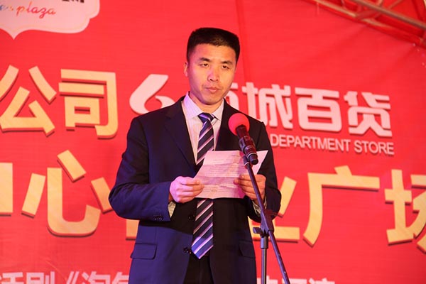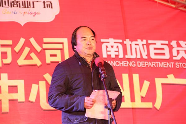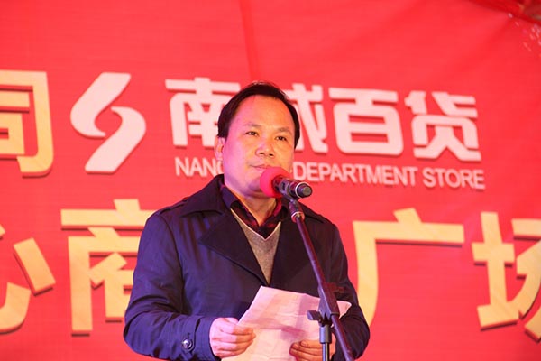 “南城百货”广西区域总监 于东宾致词。南城百货看好中心商业广场,不仅地段绝无仅有,而且规划理念超前,商业规模大,对入驻项目充满信心。